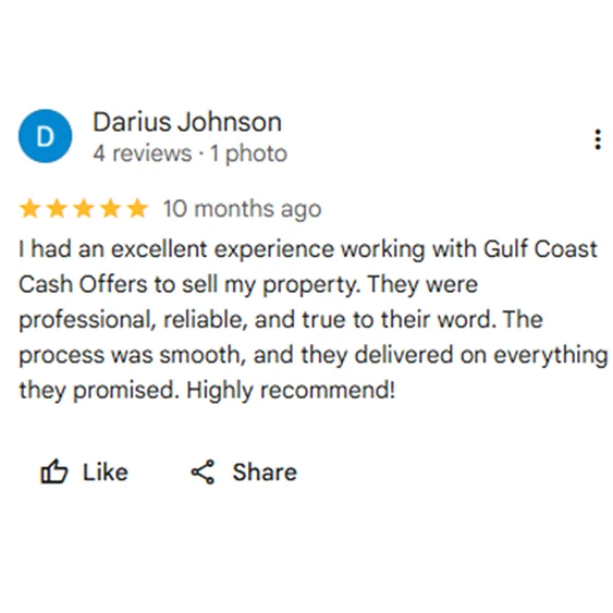 Gulf Coast Cash Offers eliminates these hassles. We buy properties as-is for cash, so you can keep on living your life. Our goal is to make your home sale as simple as possible.