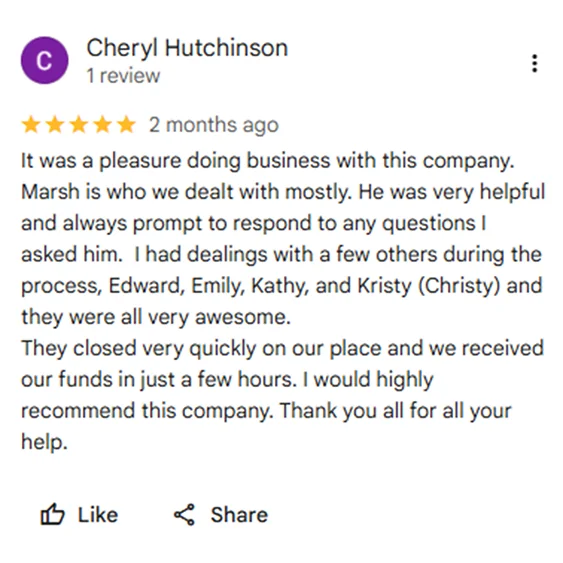 In our opinion, this is the most convenient way to sell your home. You can close when you want, leave anything behind that you want, you will know exactly how much money you’re receiving, there is no guesswork, and there are no fees or commissions. Simply put, you receive your cash with no headache.